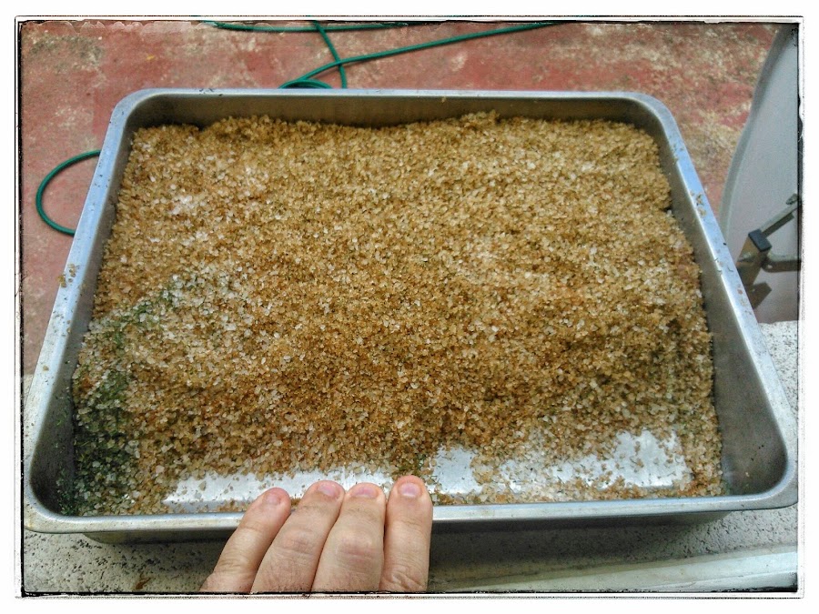 En un bol hacemos la mezcla con la sal, el azúcar y el eneldo y lo removemos todo hasta que se quede muy bien mezclado.