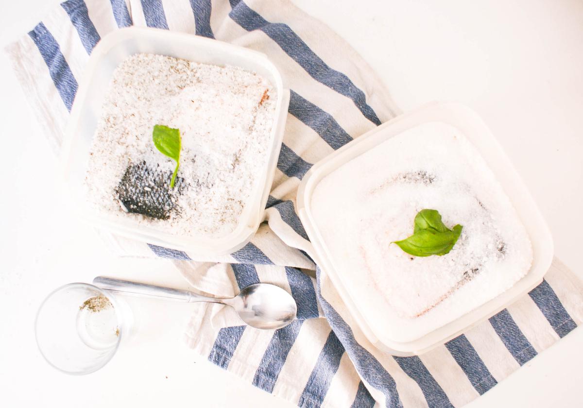 En un bol mezclamos la sal con el azúcar y el eneldo al gusto.