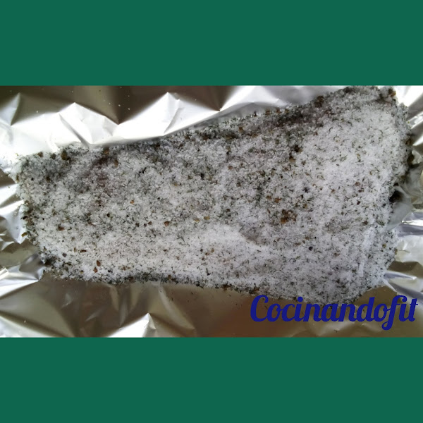 Cuando este todo cubierto lo taparemos todo con papel de aluminio hasta que nos quede bien tapado. Dejamos en la nevera 15 horas, procurando no mas pues se nos secaría demasiado, transcurrido el tiempo destapamos y quitamos toda la mezcla de sal y azúcar y lo pasamos un pico por agua, espolvoreamos con un poco de eneldo y le echamos un chorrito de aceite de oliva.