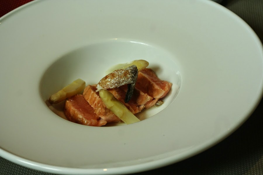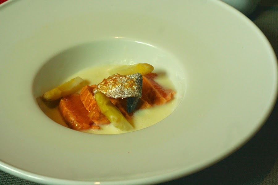 SALMÓN MARINADO Y LIGERAMENTE AHUMADO CON CREMA DE ESPÁRRAGOS