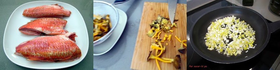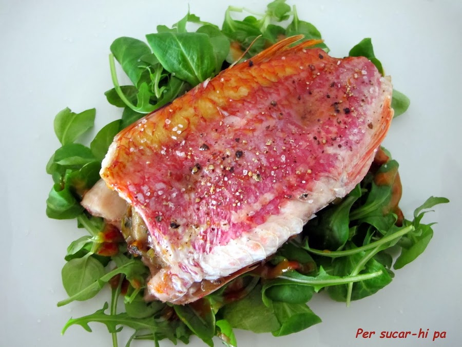 Elegir unos salmonetes grandes, y pedir en la pescadería que los limpien, les quiten la espina y hagan dos filetes de cada uno.