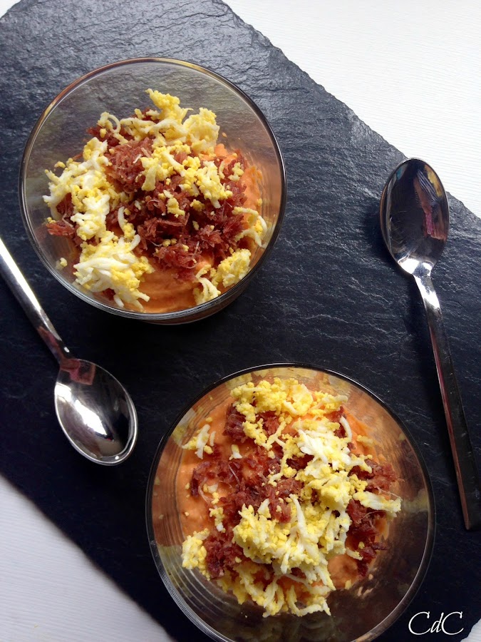 Yo me he decantado por un salmorejo. Me gusta tanto o más que el gazpacho, así que lo tuve claro desde que supe el ingrediente. Salmorejo...porque sí. Porque me gusta y es un clásico en la cocina para acompañar las tardes veraniegas. Para comer, para merendar, para cenar....A cualquier hora del día!!! Un entrante refrescante para estos días de calor que poco a poco se van abriendo paso. O un primer plato para encabezar una comida copiosa. Ahí elegís vosotros. Yo, os dejo la receta.