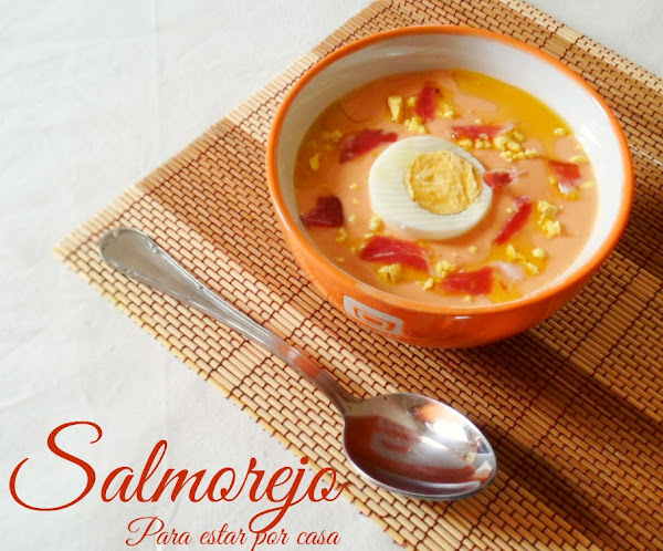 Serviremos el salmorejo, y por encima le pondremos trozos de huevo cocido y tiras de jamón serrano. El toque final podéis dárselo con un chorrito de aceite de oliva por encima.