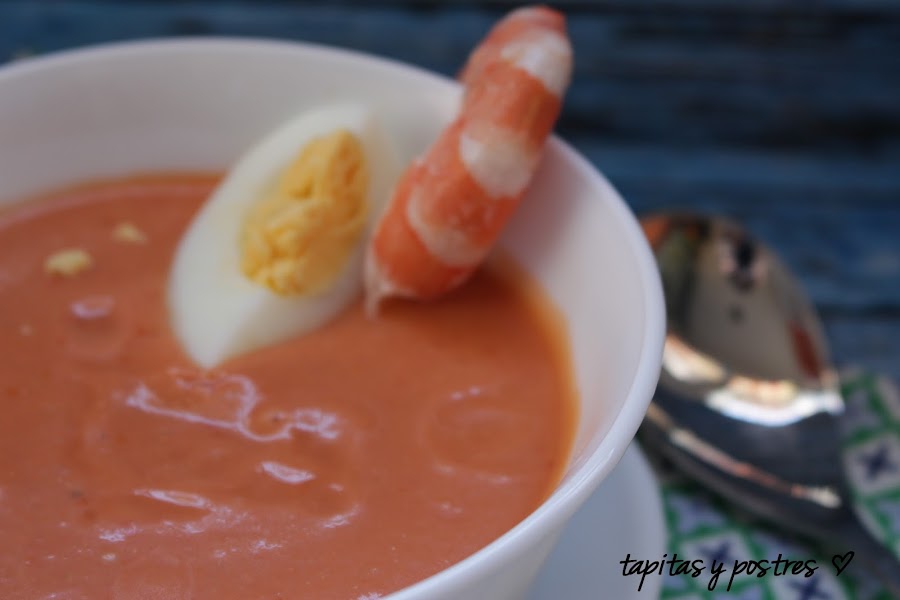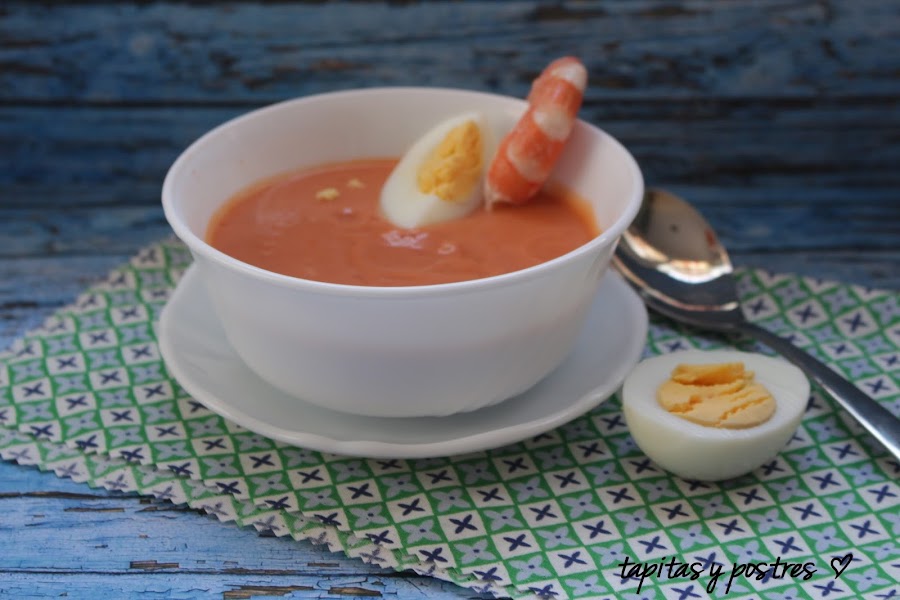 La tomamos fría, con un huevo cocido, o taquitos de jamón, o unos langostinos, como he hecho yo.