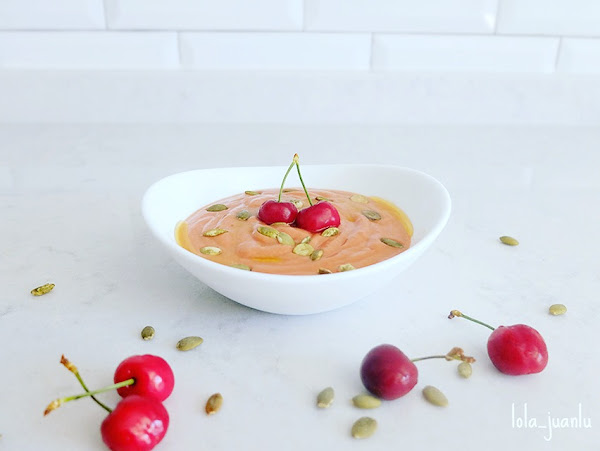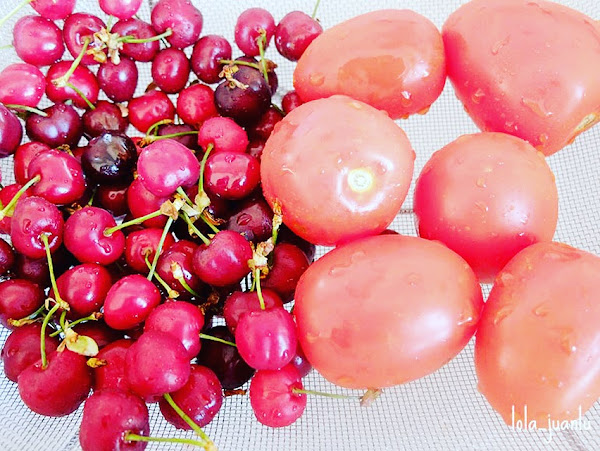 Aprovechando que es temporada de cerezas y que quería unirme al reto de este mes de Facilísimo, "Mes de la cereza/picota", vamos a hacer un salmorejo de cereza.