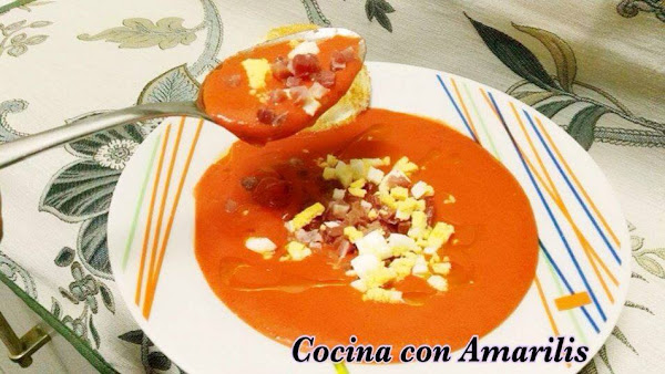 * Al momento de servir acompañar el Salmorejo de fresa con huevo picado, taquitos de jamón y también unas cuantas fresas cortadas en trocitos pequeños muy pequeños aunque en esta ocacion a mi se me olvido reservar un poquito para la guarnición.