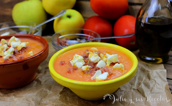 Estamos acostumbrados a tomar el tradicional, pero si eres atrevida y te gusta probar nuevos sabores y texturas , te recomiendo este salmorejo de manzana ligero, al no llevar pan y ser sustituido por la manzana, tiene menos calorías y muchos beneficios para nuestra salud aportados por la manzana. Además de un sabor especial.
