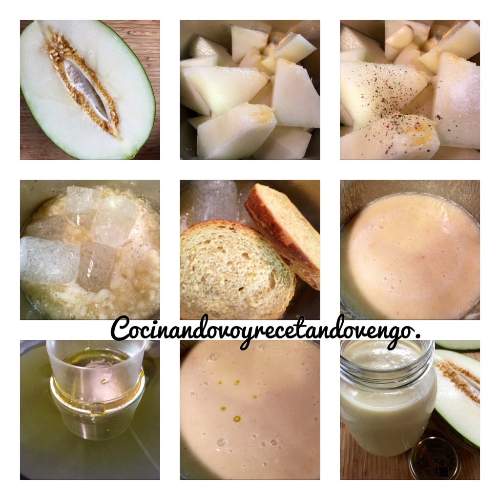 En primer lugar pelamos, limpiamos de semillas y piel el melón y troceamos a groso modo.