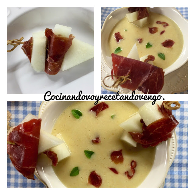 El melón es una fruta refrescante que no suele faltar en nuestra casa cuando está de temporada y hoy no os traigo un postre, os traigo una receta de melón con jamón como primer plato, a mi me gusta mucho y es ideal para cenas tanto en verano como eventos especiales, incluso en Navidades ;) También es una buena forma para dar salida a los melones insípidos que no sabemos que hacer con ellos :D Aunque yo cuando la preparo, dejo medio melón para postre y el otro medio para salmorejo de melón con jamón, se recomienda un melón maduro y dulce y un jamón de calidad como el que hoy nos acompaña, para la cantidad que necesitamos, merece la pena que sea bueno, el resultado será insuperable. El melón combina genial con el jamón y en esta receta no puede ser menos, he elaborado unas brochetas de jamón con melón que son una maravilla!! Todo un clásico el jamón con melón, y el salmorejo, ambos versionados de forma fresquita y elegante, que seguro os encantará, ;)