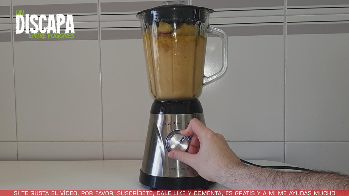 3Y pasados unos minutos, procedemos a triturar el salmorejo. Una vez triturado, lo metemos en la nevera para que esté bien fresquito.