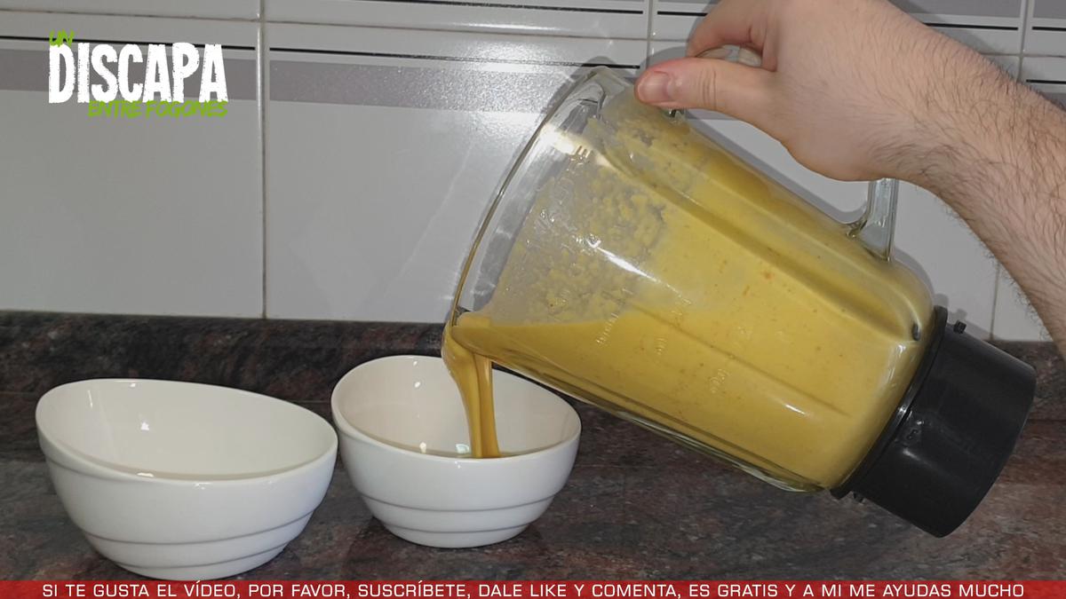 4Después, servimos el salmorejo en unos recipientes.