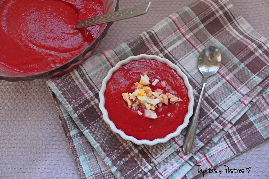 El primero es este salmorejo de remolacha que se acompaña de yogur griego y de pipas de calabaza. Lo hoce al día siguiente de decírmelo y aluciné con lo rico qe está y el contraste de sabores que en un principio, me echaba para atrás.