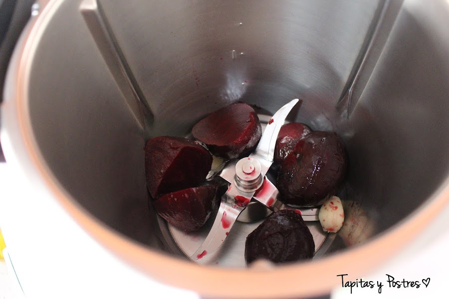 Ponemos en el vaso de la thermomix la remolacha, el ajo...