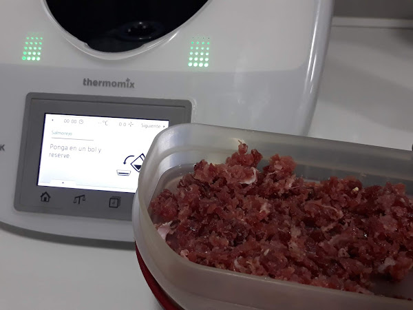5.- Bajamos con la espátula, los ingredientes y mezclamos un minutos, velocidad 5.