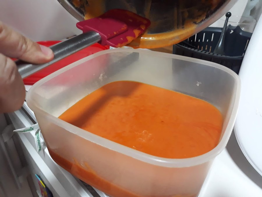 8.- Terminado el proceso, volcamos la mezcla en el recipiente que tengáis reservado para esta crema y lo metéis en la nevera para que se enfríe bien.
