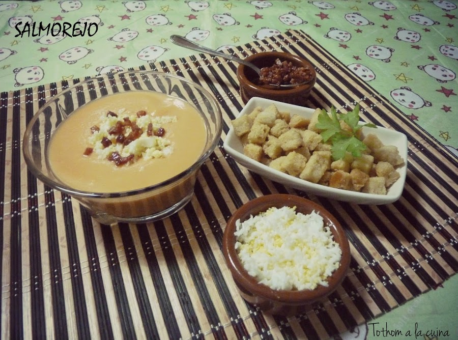 Es una receta que junto al gazpacho y el ajo blanco (recetas que próximamente publicaré en el blog) nunca faltan en verano en casa. Y que gracias a este concurjuego me he dado cuenta que no tenía publicadas ninguna de ellas en el blog.