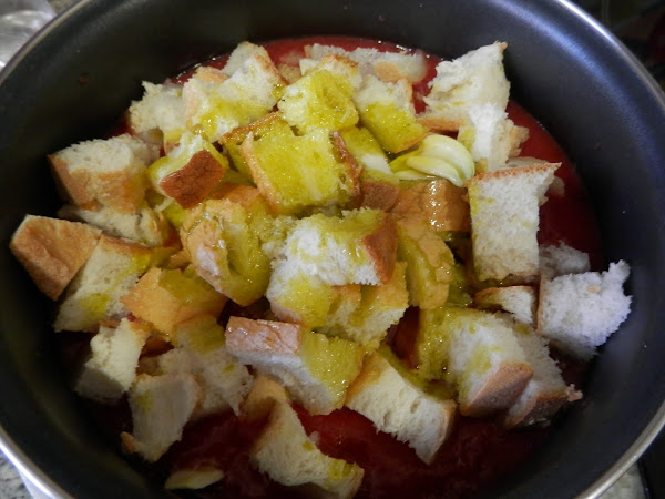 Deja en remojo el pan en el tomate durante unos diez minutos