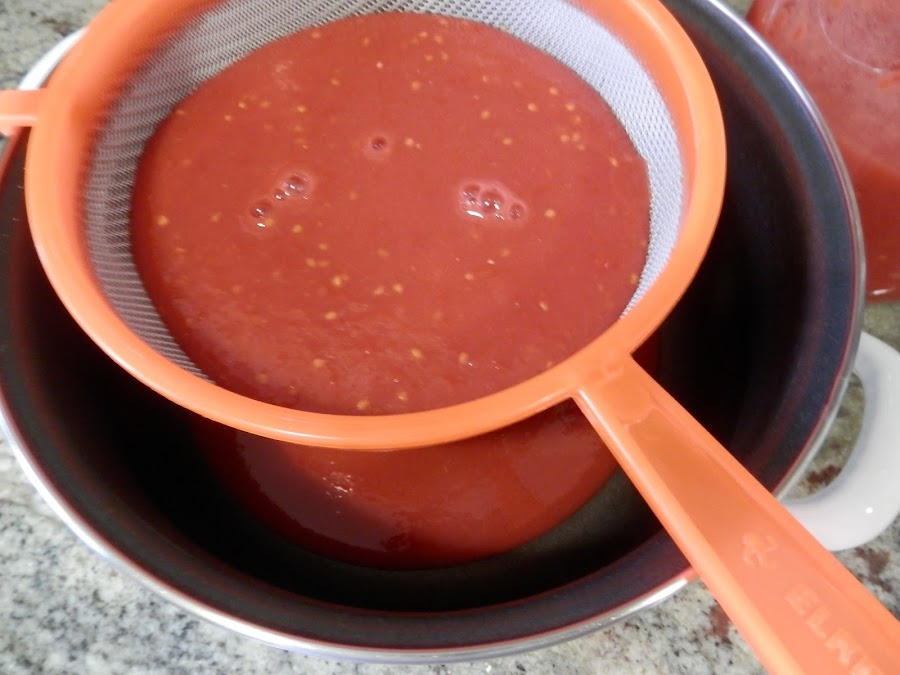 Cuélalos con un colador y ayúdate de un cazo para apretar, así dejaremos el caldo limpio de pieles y pepitas