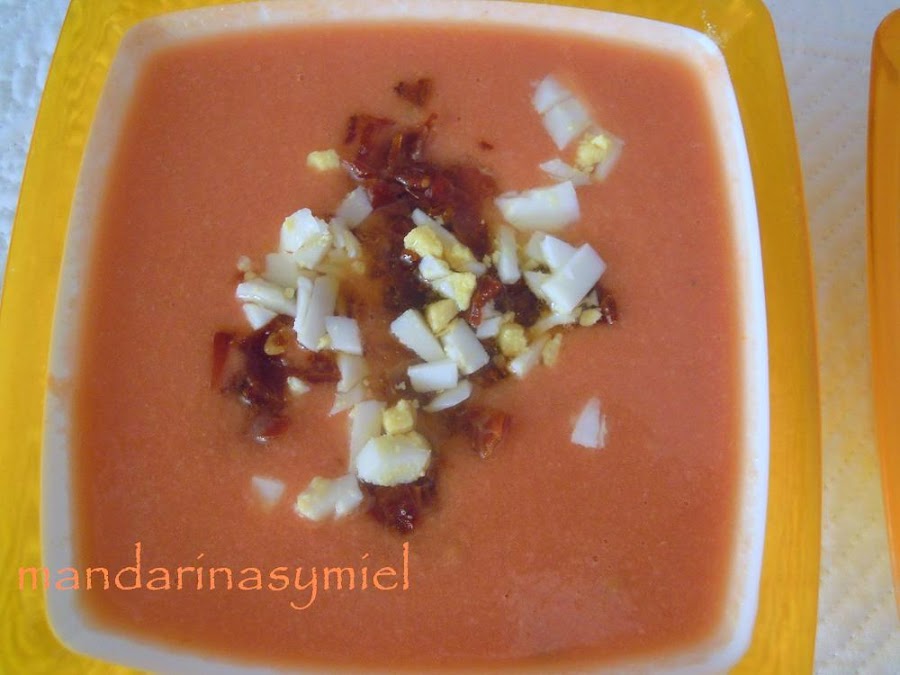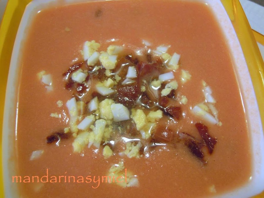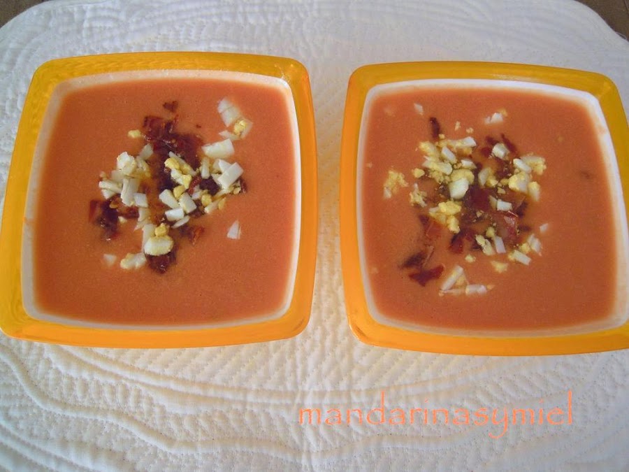 Es un plato veraniego, fresco, lleno de vitaminas y muy sencillo de hacer.....Como siempre digo con las recetas populares, hay tantas versiones como casas donde se prepara, yo os pongo mi receta, con un toque de ajo que me gusta mucho. Al igual que el gazpacho, me gusta que quede una crema algo espesa, pero si te gusta más ligero puedes colarlo.