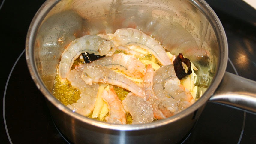 En esta ocasión he utilizado langostino congelado. El fresco es mejor y se pela mucho más fácil.
