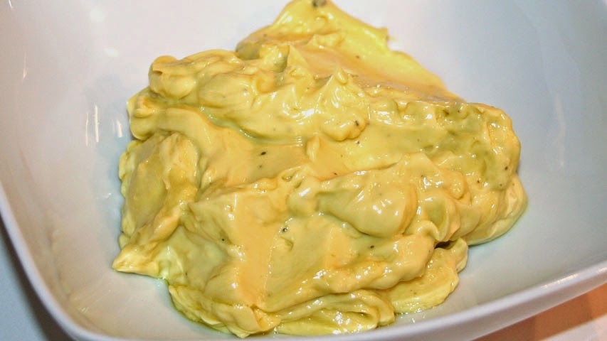 En un pequeño bote de cristal preparo un aliño con: mostaza de Dijon, aceite de oliva, zumo de limón y unas gotas de mahonesa.