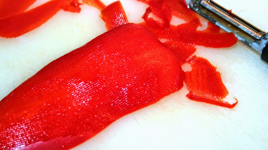 Esta ocasión he pelado el pimiento rojo. No es necesario pero queda más finolis.