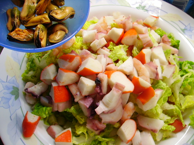Aprovechando los magníficos mejillones al natural que me ha enviado CALVO me he decidido a realizar esta fresquita ensalada de marisco, con gambitas, pulpo y bocas de mar, bañados en una salsa rosa rápida y fácil de hacer. Espero os guste y feliz fin de semana. Besos