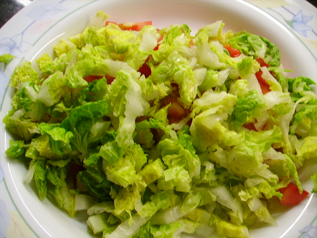 1.- Picamos el tomate y la lechuga y ponemos en la ensaladera.