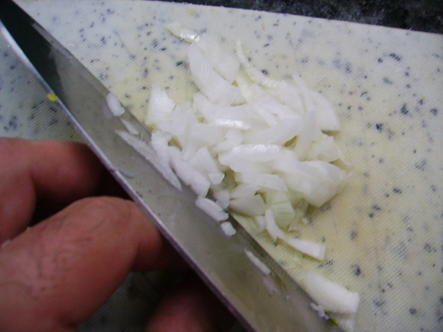 3.- Picamos la cebolla muy fina y sumamos al salpicón.