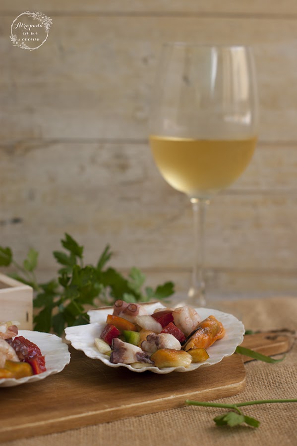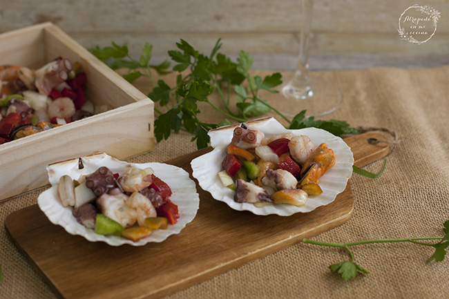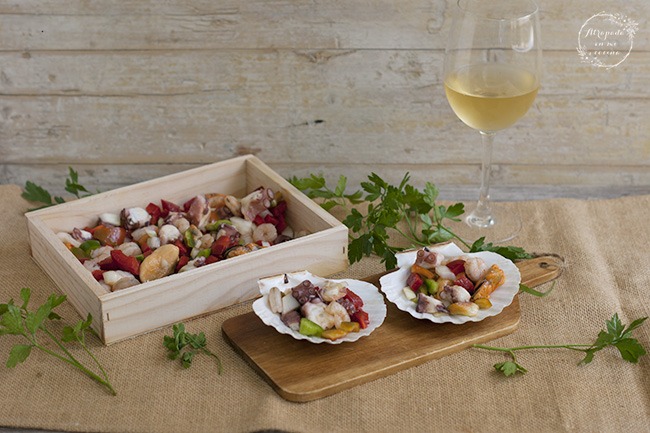 Esta semana estamos teniendo la primera ola de calor de la temporada, y por eso hoy no podía venir con una receta que no fuera bien fresquita, como ésta de salpicón de marisco, un clásico de nuestra gastronomía, que tiene multitud de versiones, pero todas ellas con el mismo denominador común, pescado o marisco mezclado con pimiento bien picadito y regado con un poco de aceite de oliva virgen extra y vinagre.