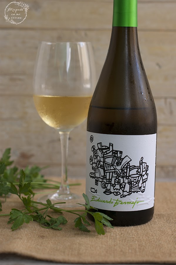 Lo hemos acompañado con un vinito blanco, el blanco Eduardo Bermejo, de bodegas Arraez, un vino procedende de Valencia y elaborado con uva Moscatel y Macabeo. Vino de color amarillo pálido, brillante y límpido. De alta intensidad aromática en la que predominan las notas de la moscatel en combinación con las de las otras variedades. En boca es untuoso que deja una sensación golosa. La etiqueta ha sido diseñada por el pintor Eduardo Bermejo de ahí su nombre. Yo lo he adquirido, como tantos otros, en el Lugar del Vino de la Costa Tropical, a un precio bastante bueno, alrededor de cinco euros la botella.