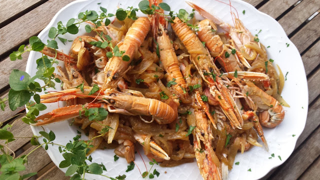 Cigalas encebolladas