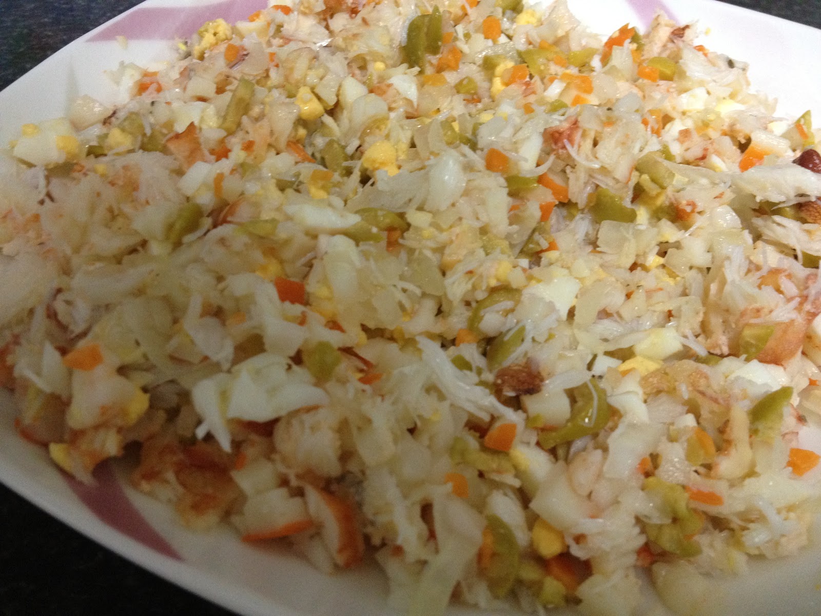 4º - A continuación salamos al gusto , echamos un chorrito de aceite de oliva , otro chorro generoso de vino Albariño y removemos bien para meter en la nevera y disfrutar posteriormente de un delicioso y fresquito salpicón de marisco .