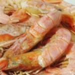 Cocemos los langostinos teniendo cuidado de no pasarnos y los enfriamos, lo más rápidamente posible, ayudándonos de cubitos de hielo. Cuando estén fríos los pelamos y cortamos por la mitad.