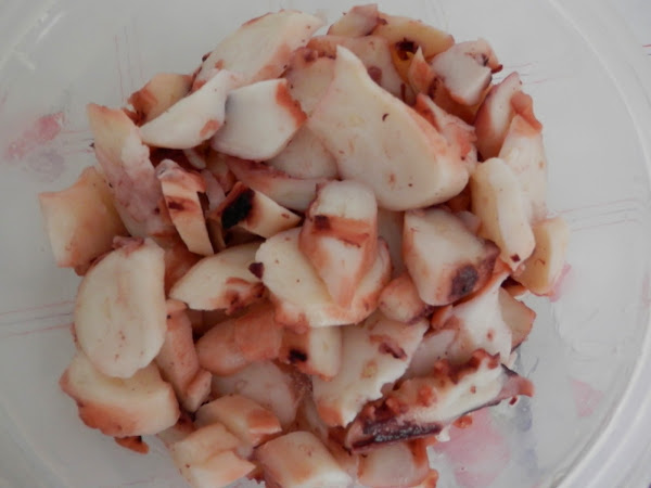 Descongelamos el rejo y lo escurrimos para que toda el agua que suelta no se mezcle con la vinagreta que le vamos a hacer.