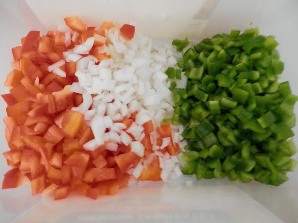 Picamos los pimientos muy pequeños al igual que las cebollas.