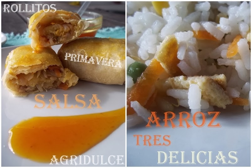 Así que me lié la manta a la cabeza, como se suele decir y para allá que me fuí con el menú pensado, todo muy vegetariano, muy chino y muy rico: Rollitos Primavera, Arroz tres Delicias y Salsa Agridulce ??? _ _ _ _ _ os lo traduzco, por si no domináis el chino como yo :)