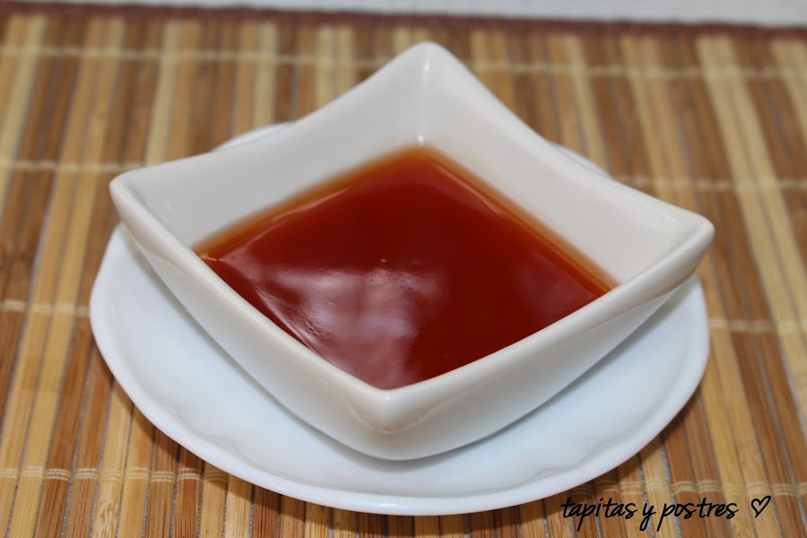 Esta salsa agridulce es igualita a la que ponen en los restaurantes chinos, y es tan rápida y fácil de hacer que no da ninguna pereza prepararla y tenerla almacenada en la nevera para cuando la necesitemos.