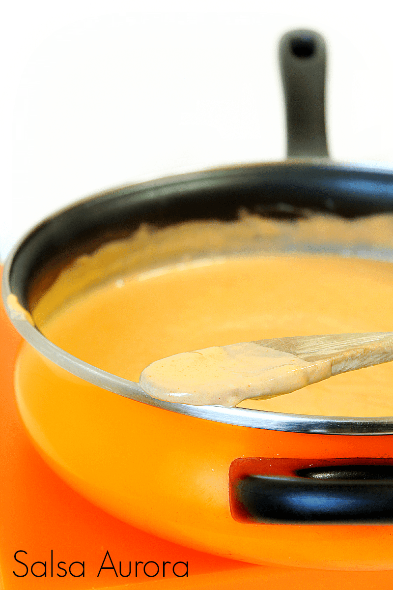 Y ya tenemos nuestra Salsa Aurora lista para disfrutar con todo tipo de pasta y gratinarla, sobre una lasaña o unos canelones por ejemplo. Otra idea es sobre unas berenjenas o calabacines rellenos que vayan al horno, con pescados, con carnes, verduras.. o lo que nuestra imaginación y gusto nos dicte.