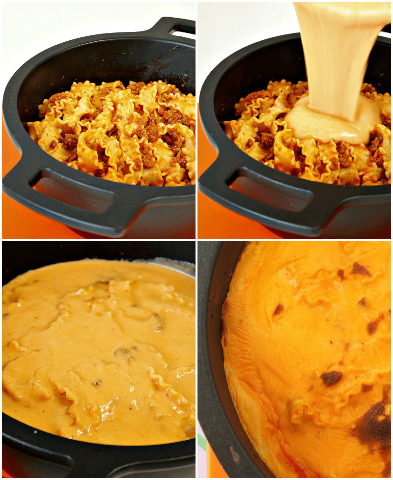 Cuando la bechamel empiece a espesar, echaremos la salsa de tomate y mezclaremos hasta que el color de la salsa sea homogéneo. Añadimos ahora la sal, pimienta blanca, y nuez moscada al gusto y mezclamos. Dejaremos cocinar la salsa durante un minuto más sin parar de remover para que no se nos agarre a la cazuela.