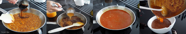 Añadir el vinagre, mezclar bien y dejar cocer dos o tres minutos para que se evapore el alcohol. Incorporar el caldo de pescado, que habremos calentado previamente, y remover. Probar de sal y rectificar si es necesario. Dejar reducir hasta que adquiera textura y consistencia de salsa.