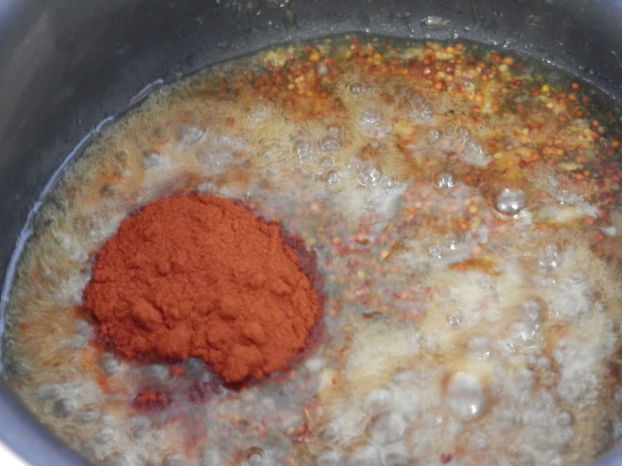 A continuación, agrega, el tomate, la mostaza y el pimentón.