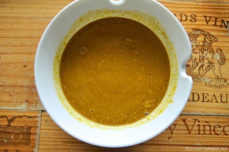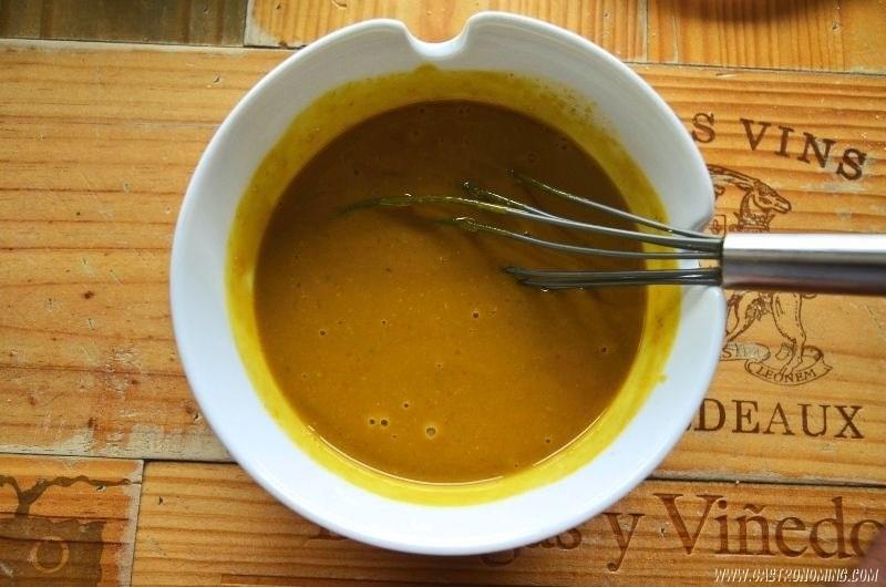 En un bol colocamos todos los ingredientes y con ayuda de una varilla vamos a mezclar hasta que todos los ingredientes queden bien mezclado y una salsa con homogénea, empieza suavemente y termina de forma enérgica.