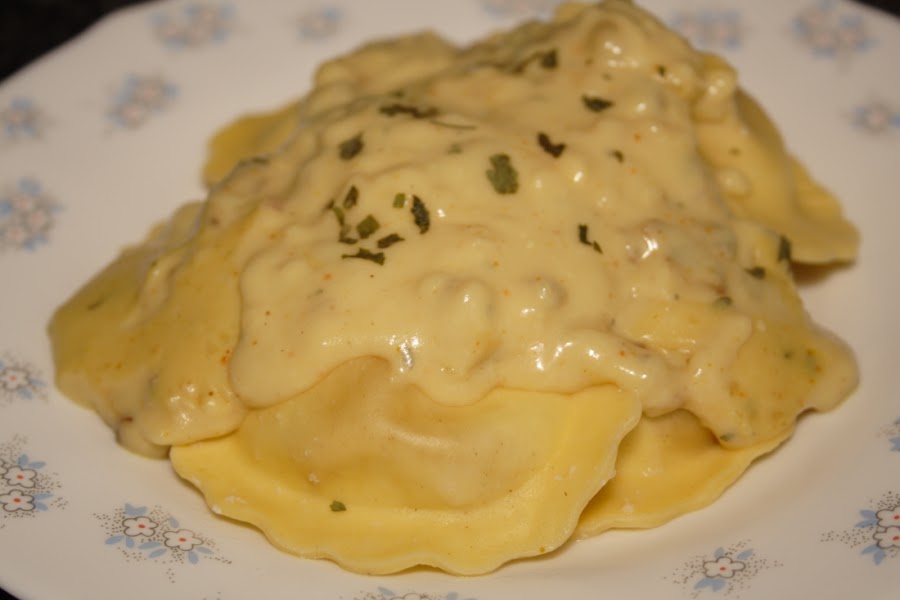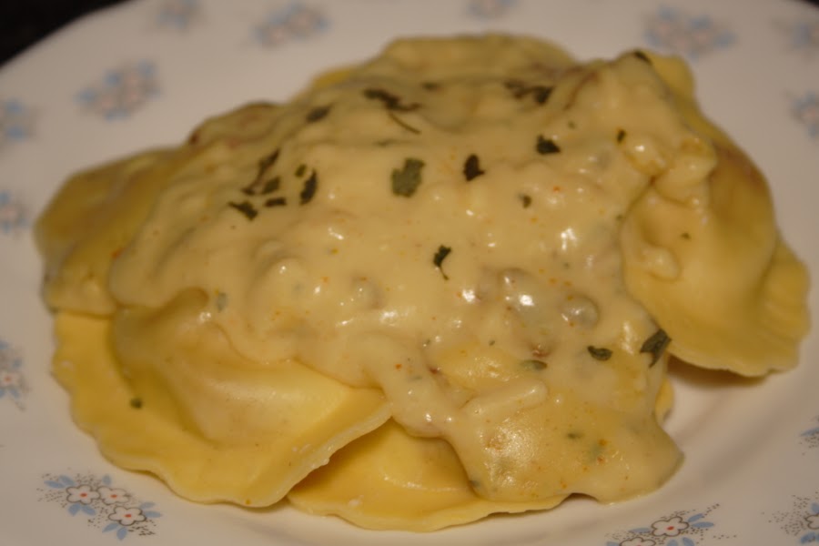 Ya os he dicho alguna vez que me canso de hacer y de comer siempre lo mismo. Y pensando pensando...se me ocurrió que una pasta fresca, en esta ocasión tortellini, no estaría nada mal con esta salsa. Así que otra receta de "cosecha propia".