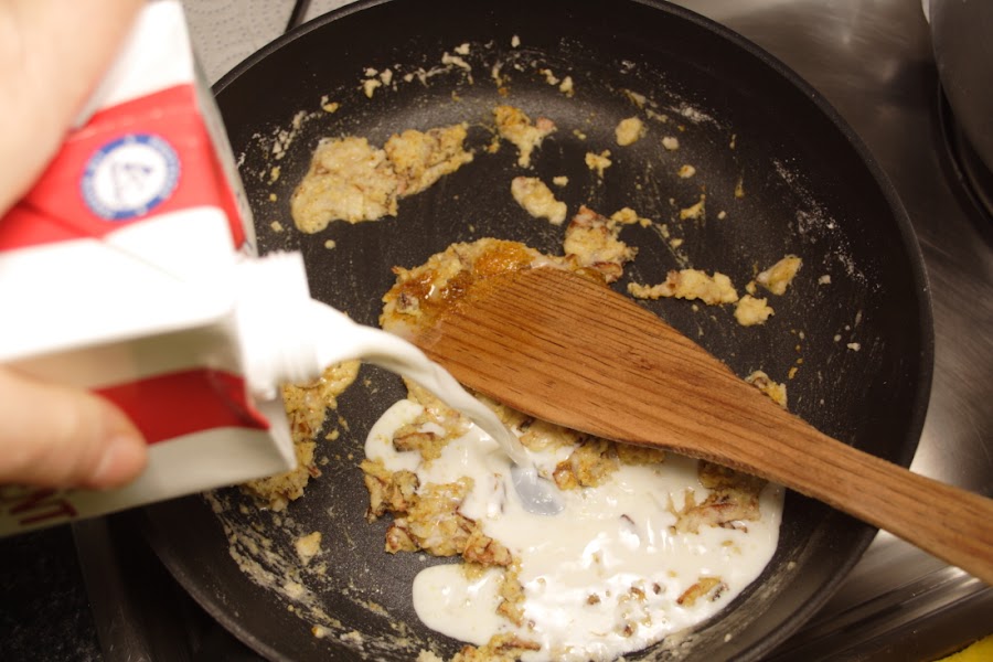 Consejo: Esta salsa si que es hacerla y servirla. No la haremos de víspera porque la harina hace que espese y tendríamos que volver a añadirle leche y seguir con el proceso.