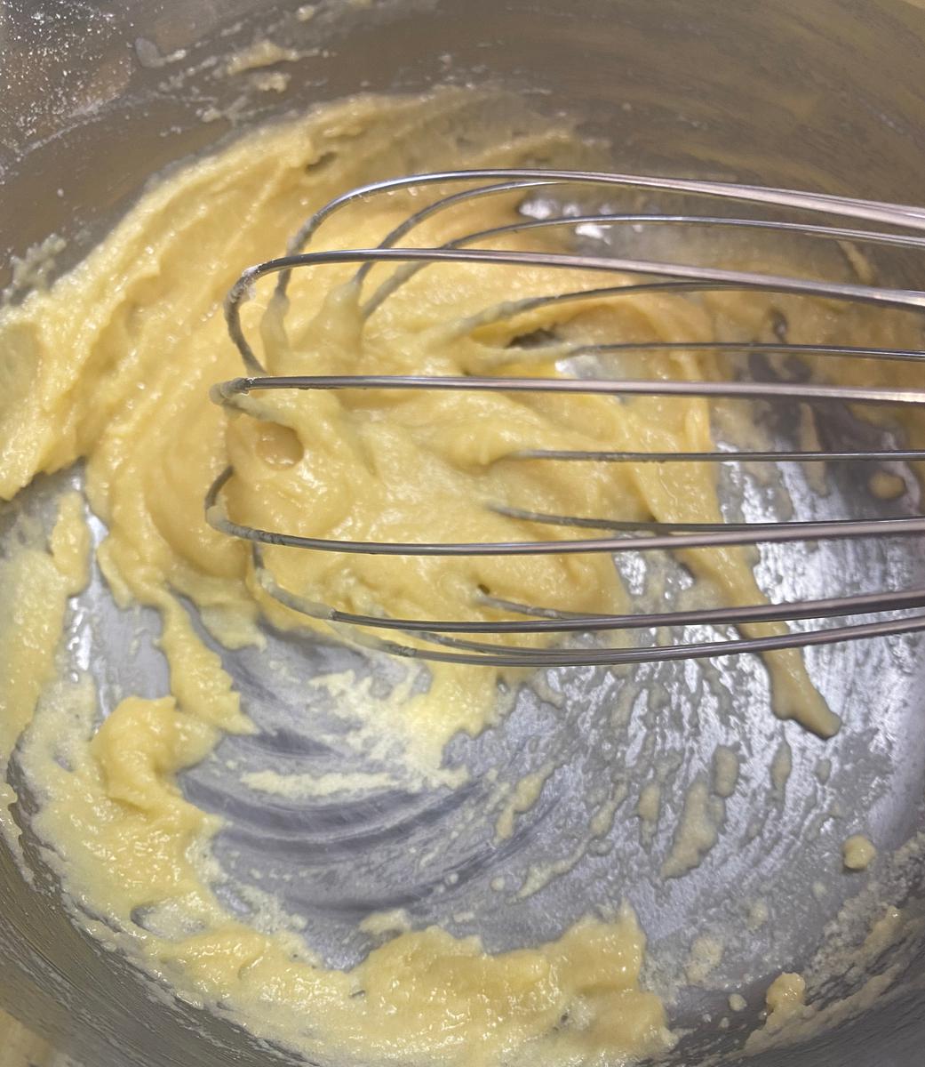 Poco a poco, vierte la leche caliente sobre la roux, mezclando continuamente con un batidor para evitar grumos. Continúa agregando la leche hasta que la mezcla se vuelva suave y espese.