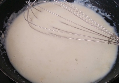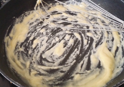Revolvemos muy bien para que se cueza la harina y la bechamel no tenga sabor a harina cruda.Debe quedarte una masa cremosa amarillenta