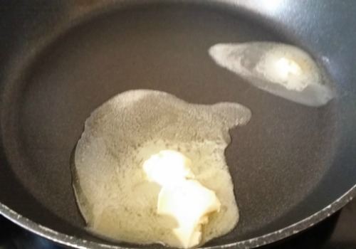 Se pone la nuez de mantequilla en la sartén.