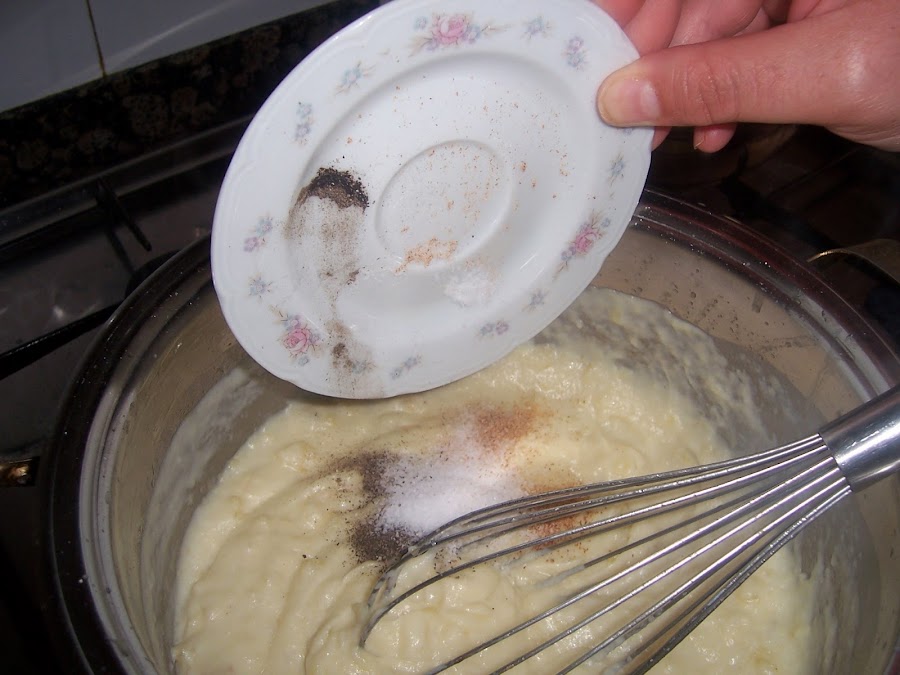 Retiramos del fuego y añadimos la pimienta, la nuez moscada (si podemos recién rallada) y la sal al gusto.