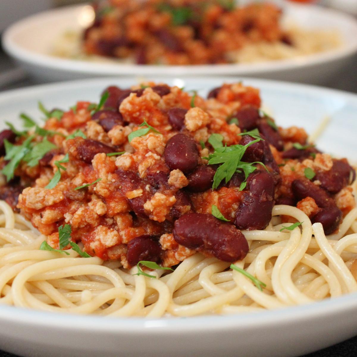 Añade las alubias y deja cocer por 10 min más. Prepara tu formato de pasta favorito y sírvela junto con nuestra jugosa salsa, perejil, queso parmesano vegano o levadura nutricional.